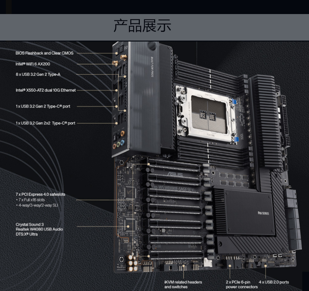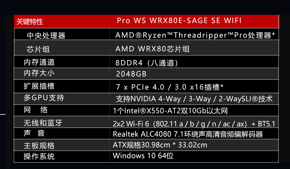 • 商品名称:华硕(ASUS)PRO WS WRX80E-SAGE SE WIFI工作站主板