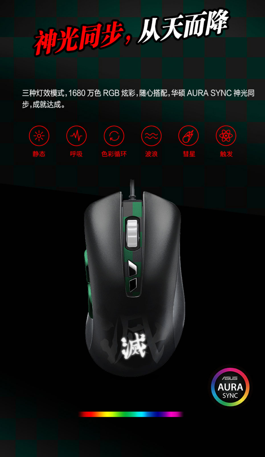 • 商品名称:华硕TUF GAMING X 鬼灭之刃 炭治郎 游戏鼠标