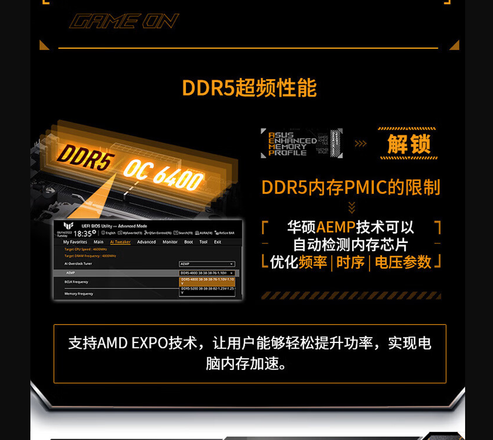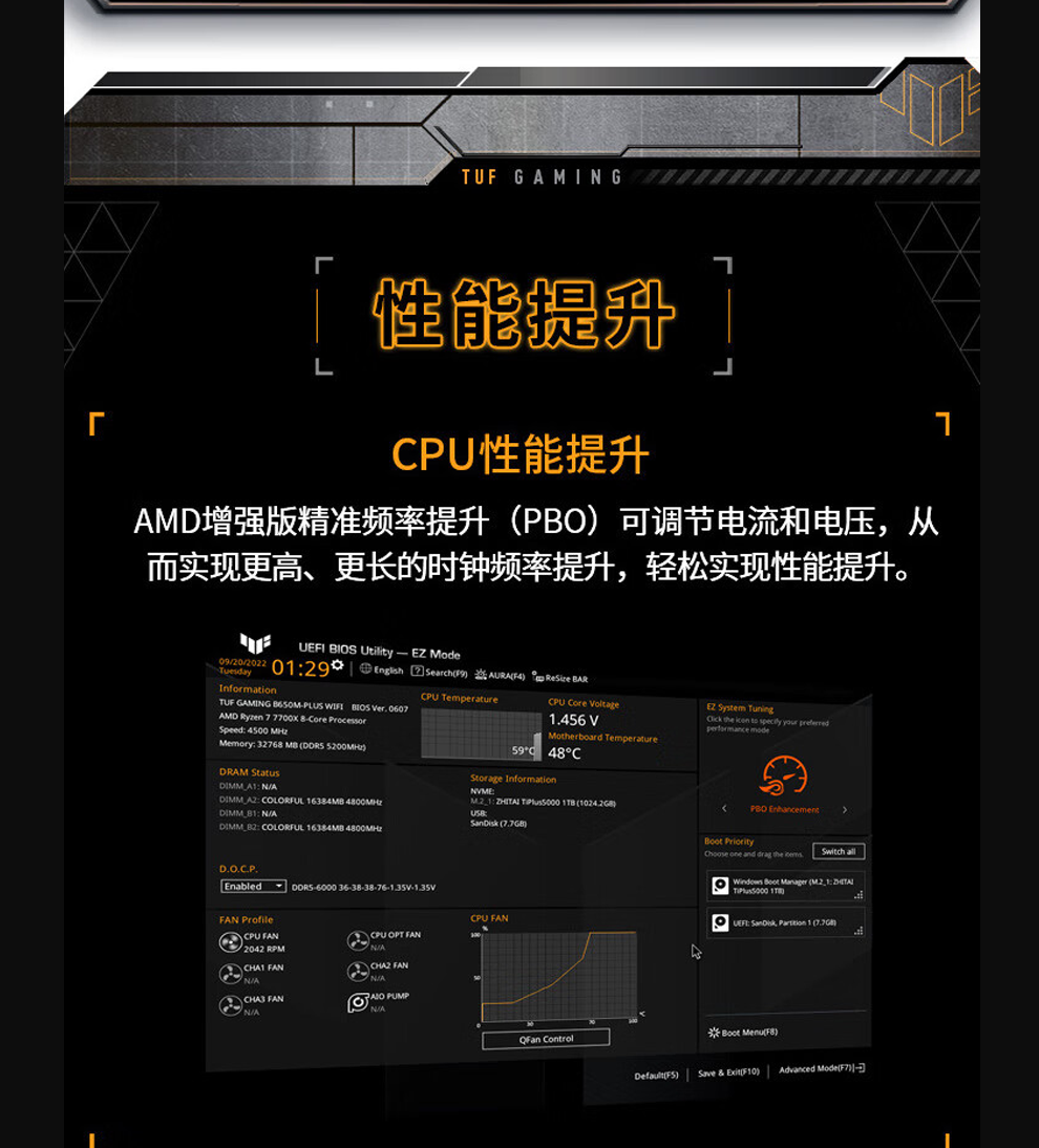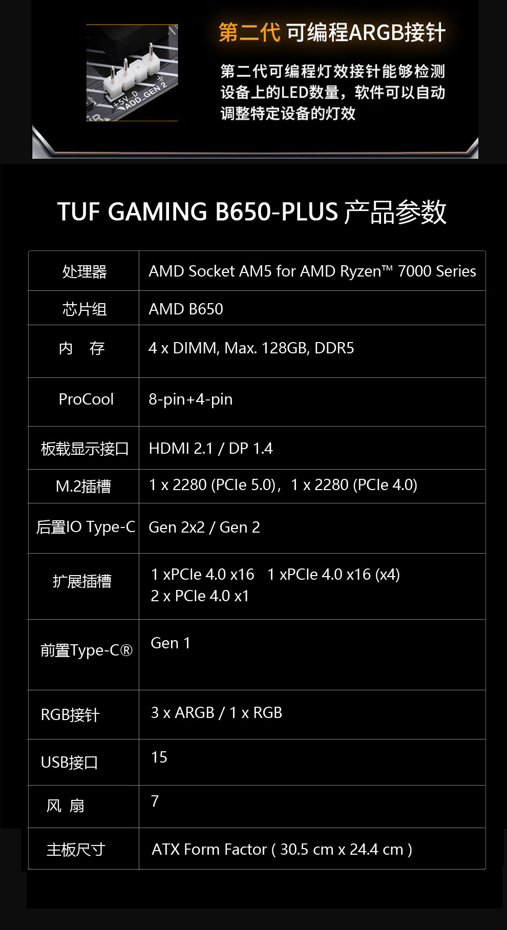 • 商品名称:华硕TUF GAMING B650-PLUS重炮手 台式机电脑主板