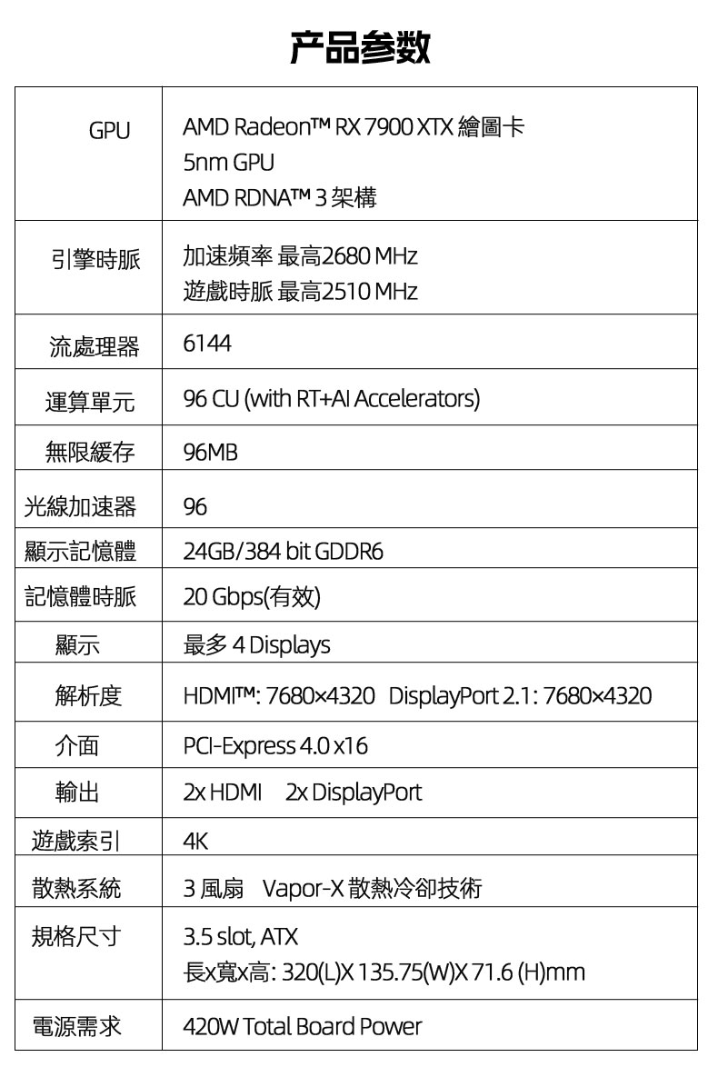 • 商品名称:蓝宝石RX7900XT 24G D6白金版OC AMD台式机电脑独立显卡