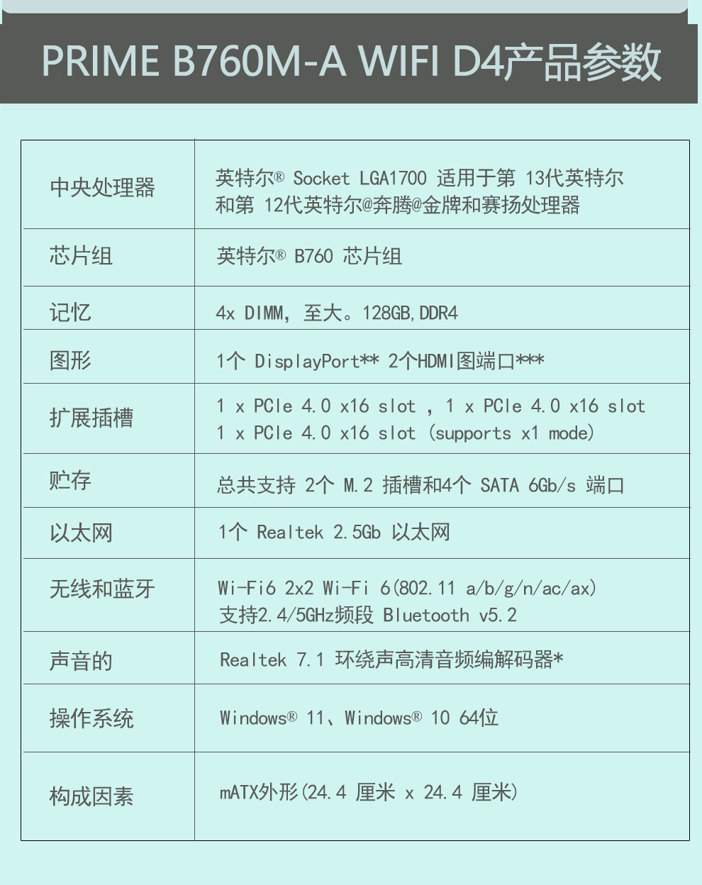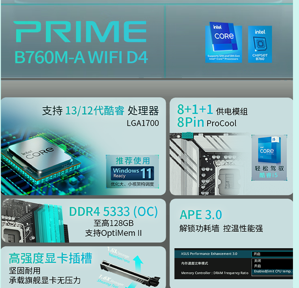 • 商品名称:华硕PRIME B760M-A WIFI D4台式机电脑主板