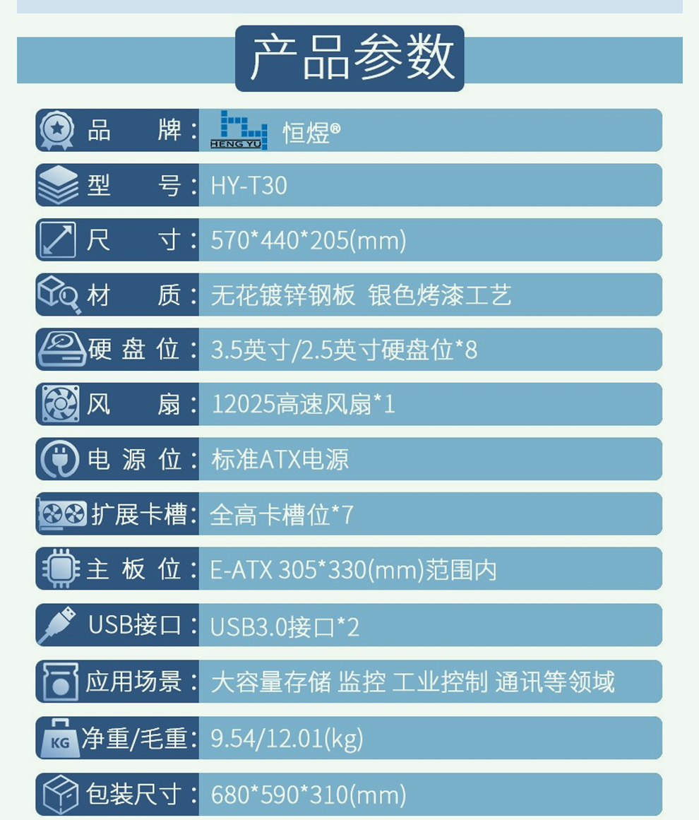 • 商品名称:华硕 恒煜T30机箱塔式服务器工作站机箱升级版 8个硬盘位 支持EATX服务器主板
