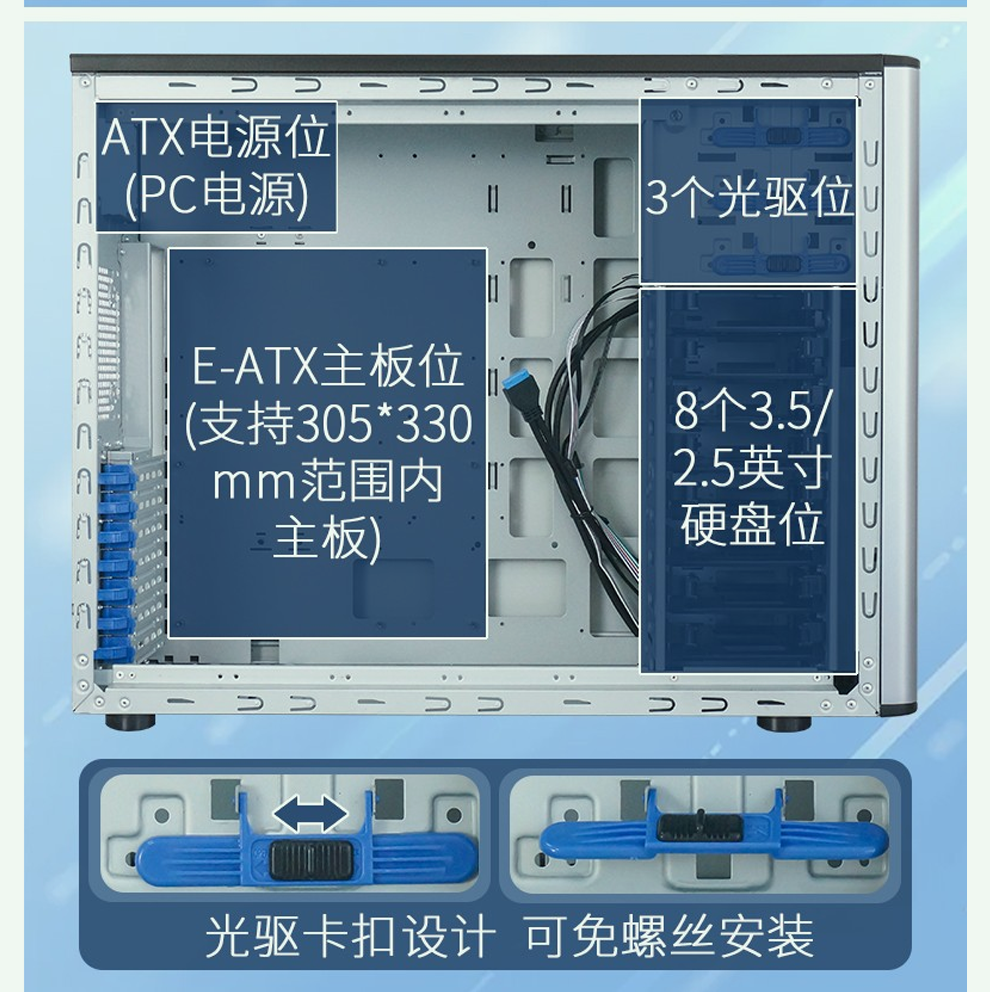 华硕 恒煜T30机箱塔式服务器工作站机箱升级版 8个硬盘位 支持EATX服务器主板