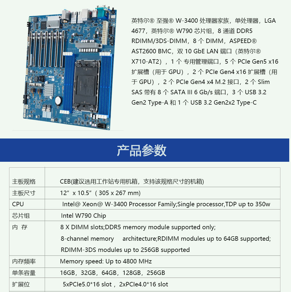 • 商品名称:技嘉MW83-RP0 至强第四代工作站主板
