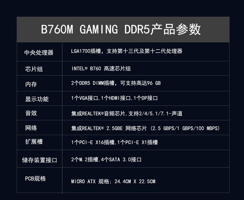 • 商品名称:技嘉(GIGABYTE) B760M GAMING (黑红色)