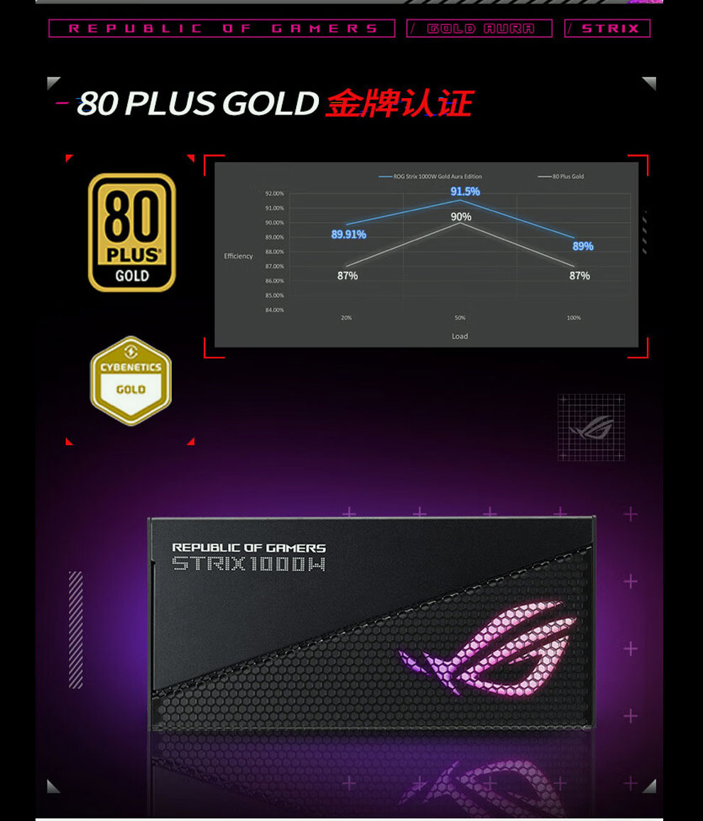 华硕(ASUS)雷鹰AURA ROG-STRIX-1000G-AURA-GAMING电源