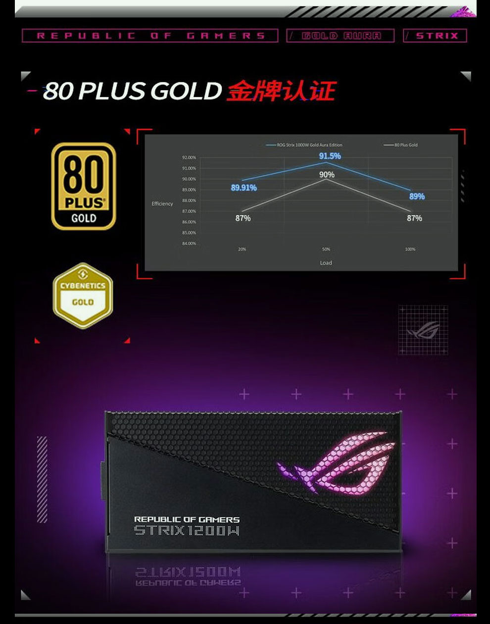 华硕(ASUS)雷鹰AURA ROG-STRIX-1200G-AURA-GAMING电源