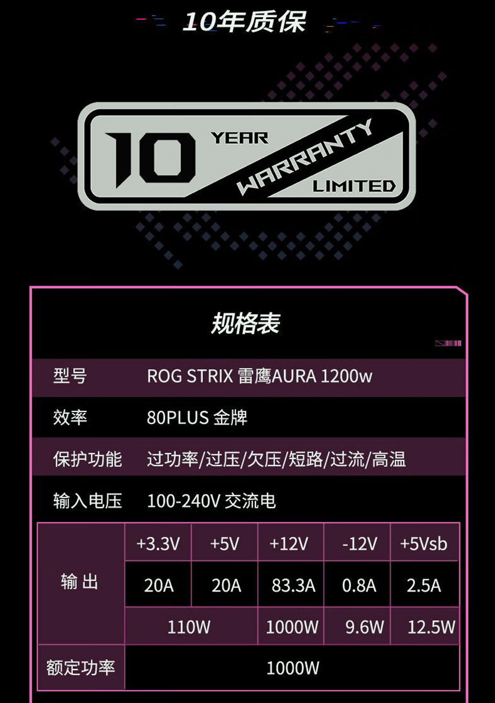 • 商品名称:华硕(ASUS)雷鹰AURA ROG-STRIX-1200G-AURA-GAMING电源