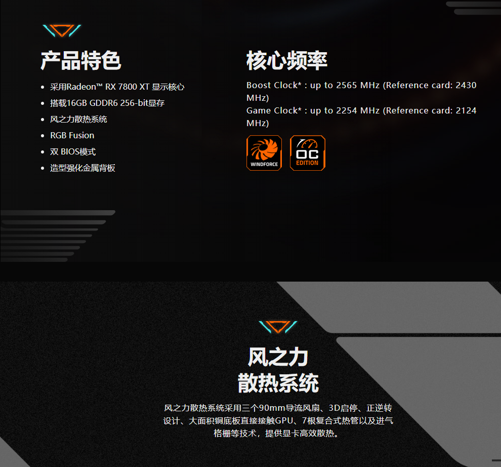 • 商品名称:技嘉技嘉GV-R78XTGAMING OC-16GD显卡