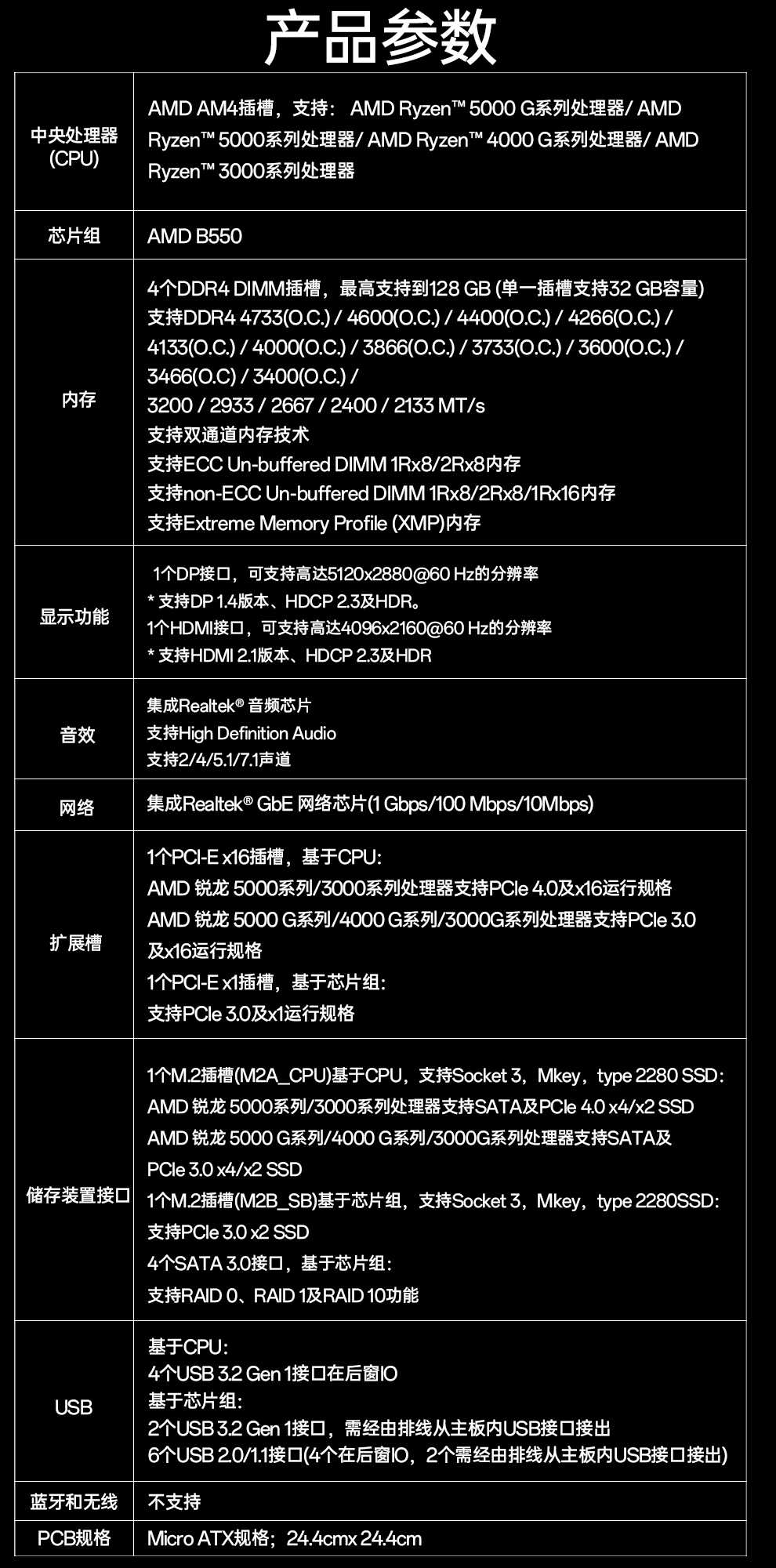 • 商品名称:技嘉(GIGABYTE)B550M K主板