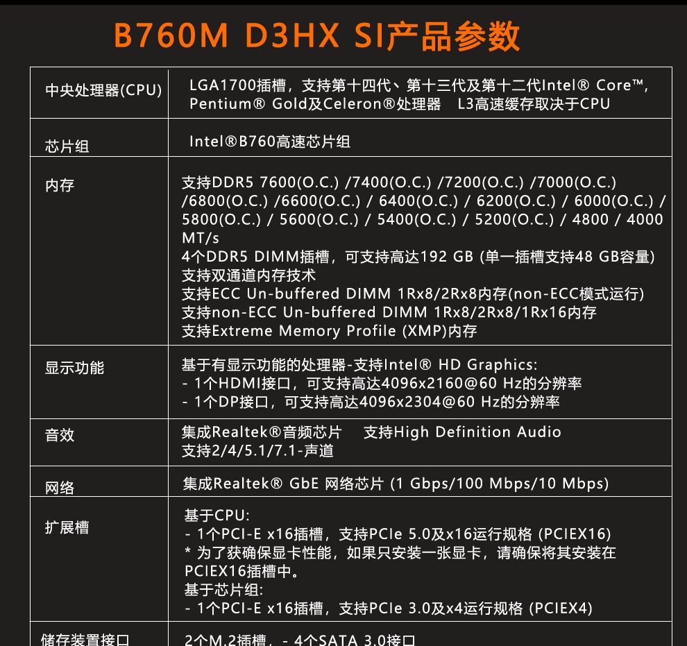 • 商品名称:技嘉(GIGABYTE)B760M D3HX SI主板 网吧首选