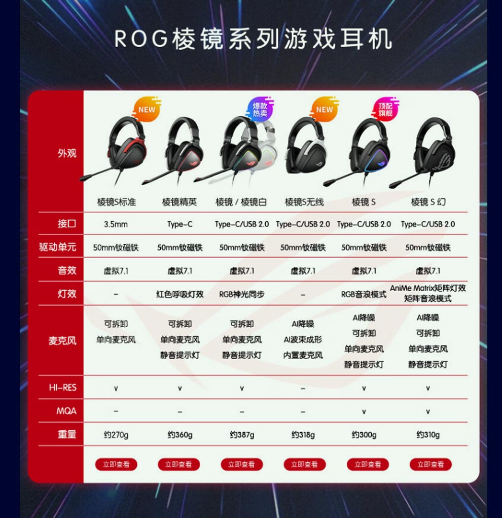 • 商品名称:ROG 棱镜s标准 游戏耳机 头戴式耳机 环绕7.1音效 有线无延迟 3.5mm连接 ROG手机耳机