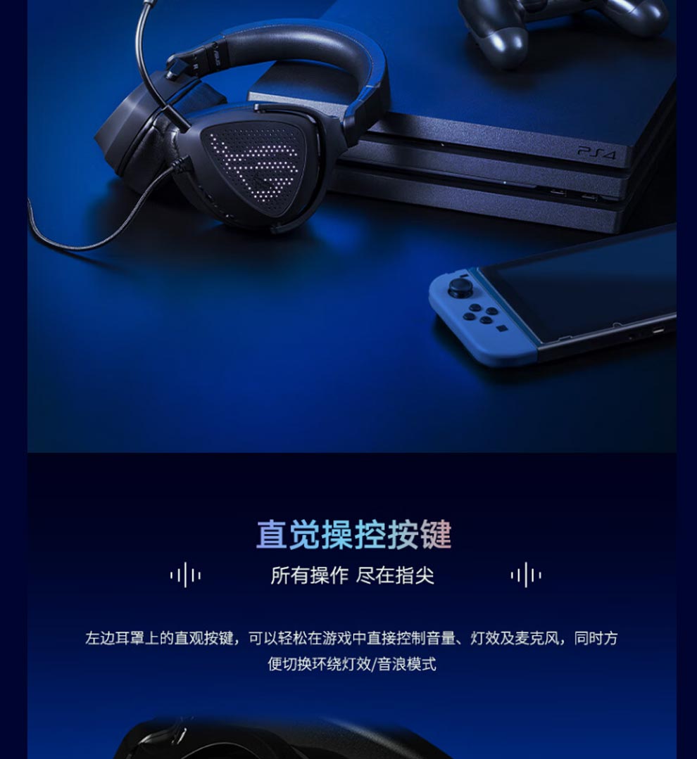 • 商品名称:ROG棱镜精英版 游戏耳机 头戴式耳机 环绕7.1音效 TypeC接口 Switch耳机 可拆卸麦克风 ROG手机耳机