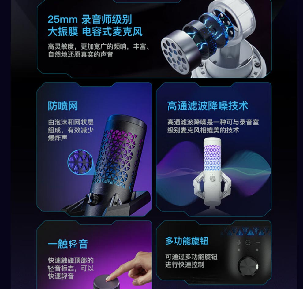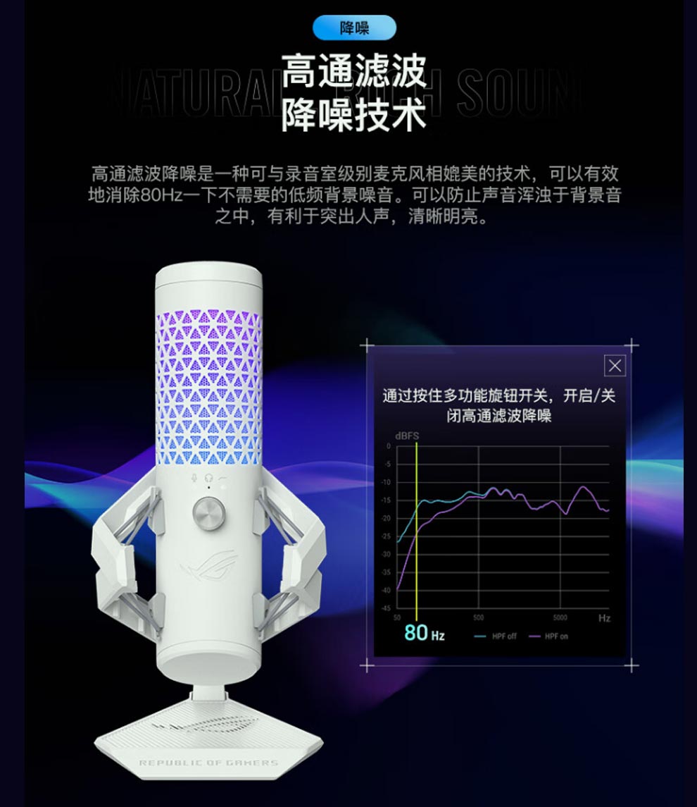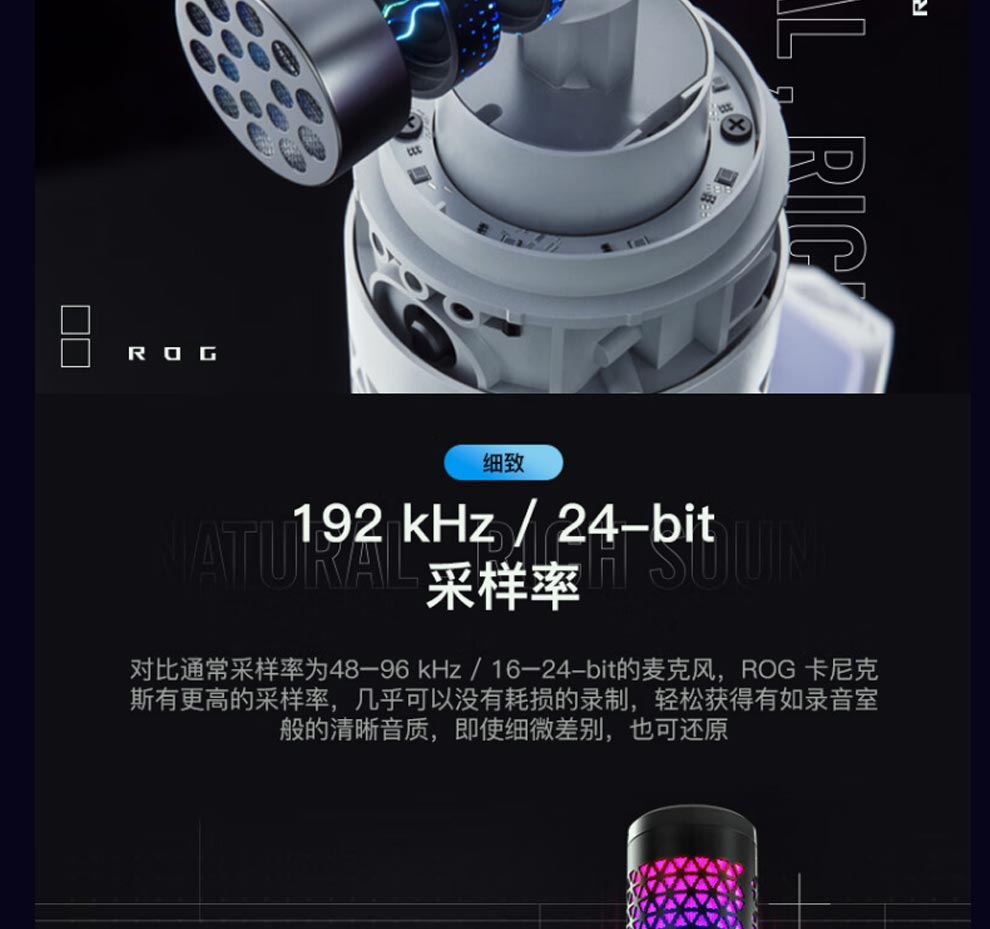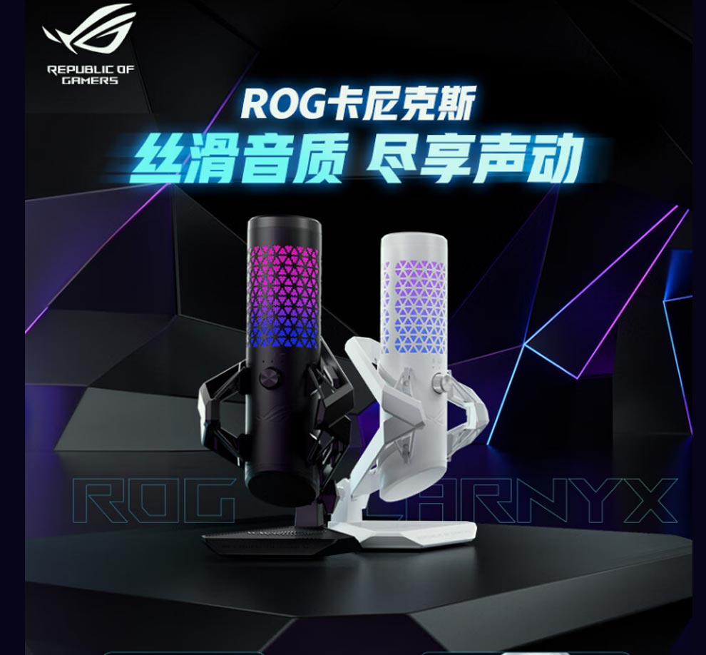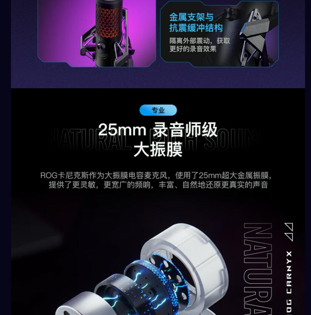 • 商品名称:ROG卡尼克斯专业麦克风 桌面麦克风直播设备唱歌专用麦克风全民k歌神器专业主播高通滤波降噪RGB黑色