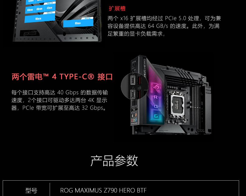 • 商品名称:ROG华硕 玩家国度 ROG MAXIMUS Z790 HERO BTF主板