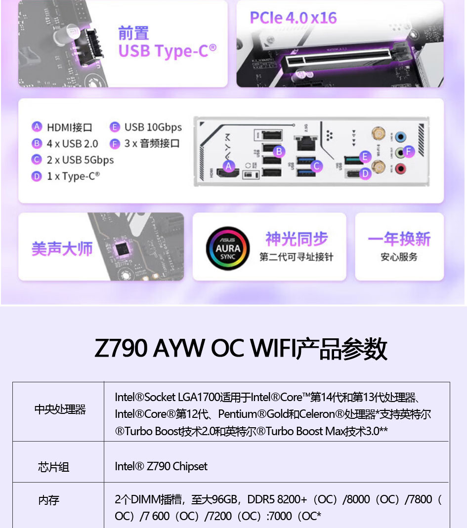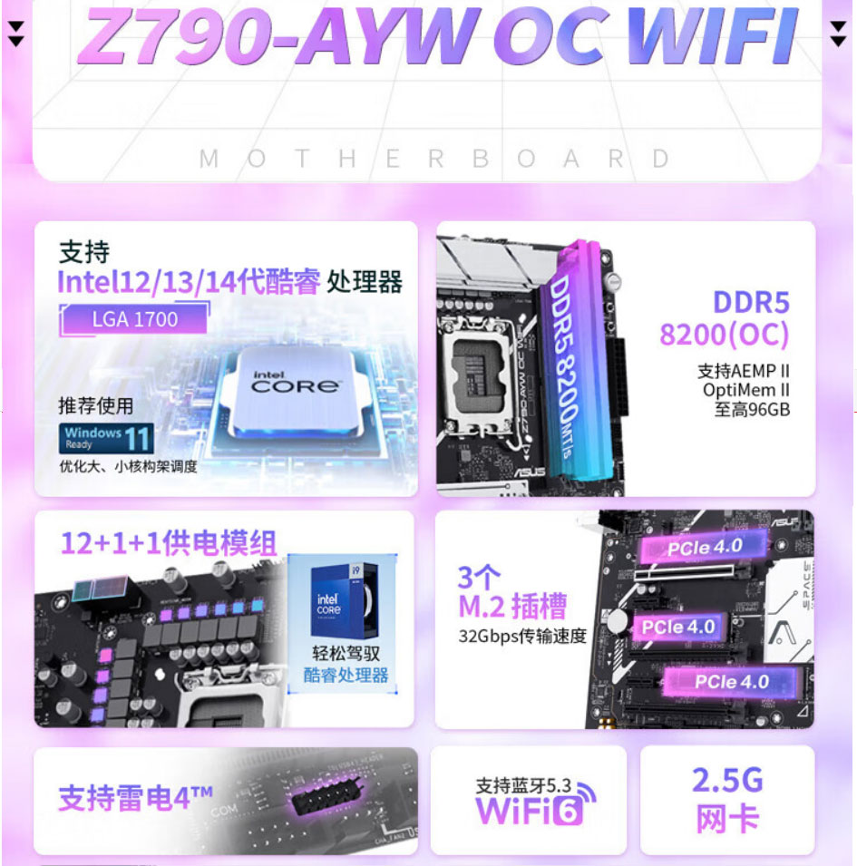 • 商品名称:华硕(ASUS)Z790 AYW OC WIFI 哎呦喂 主板 支持DDR5