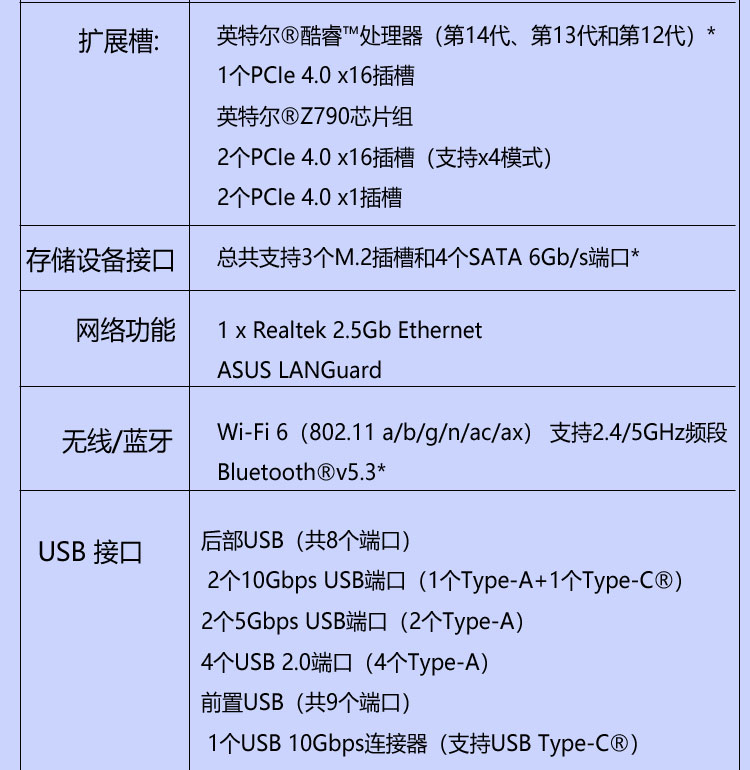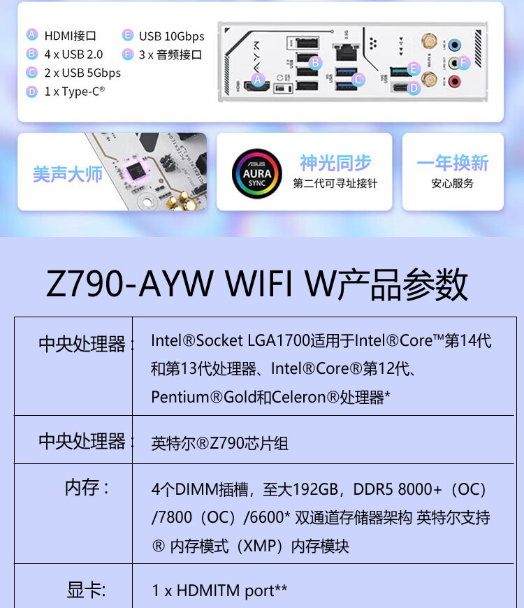 • 商品名称:华硕(ASUS)Z790-AYW WIFI W 哎呦喂 主板