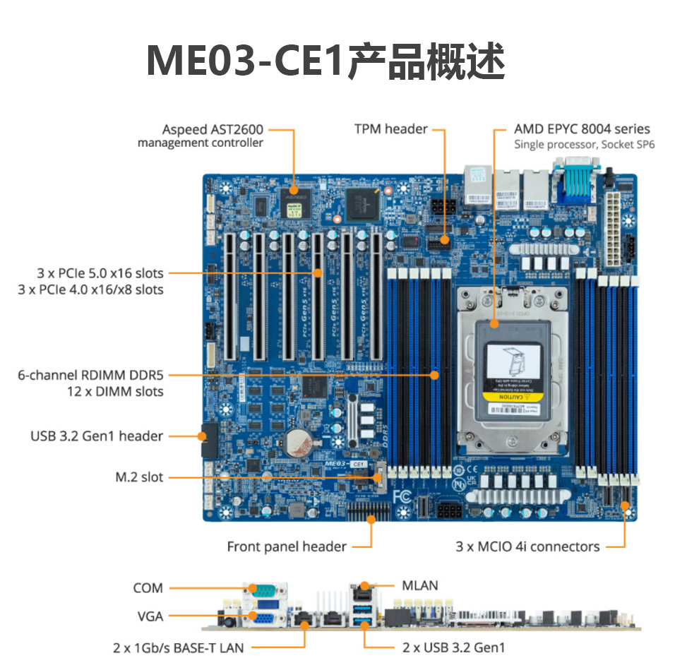 技嘉(GIGABYTE)ME03系列 EPYC 8004霄龙服务器主板 DDR5 ME03-CE1单路主板