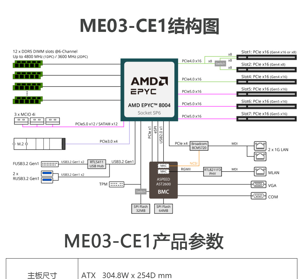 • 商品名称:技嘉(GIGABYTE)ME03系列 EPYC 8004霄龙服务器主板 DDR5 ME03-CE1单路主板