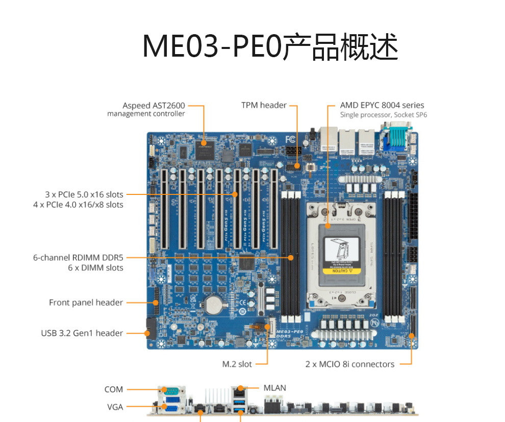 • 商品名称:技嘉(GIGABYTE)ME03系列 EPYC 8004霄龙服务器主板 DDR5 ME03-PE0 单路主板