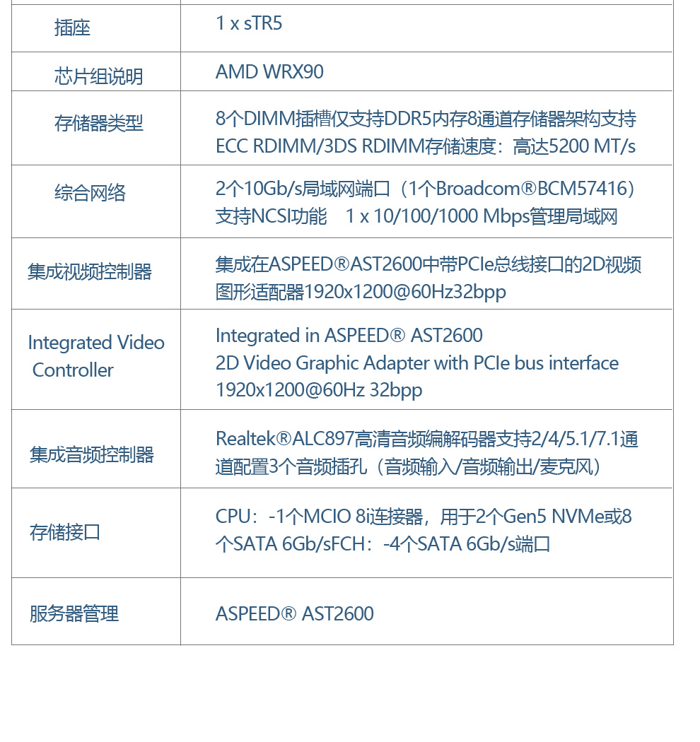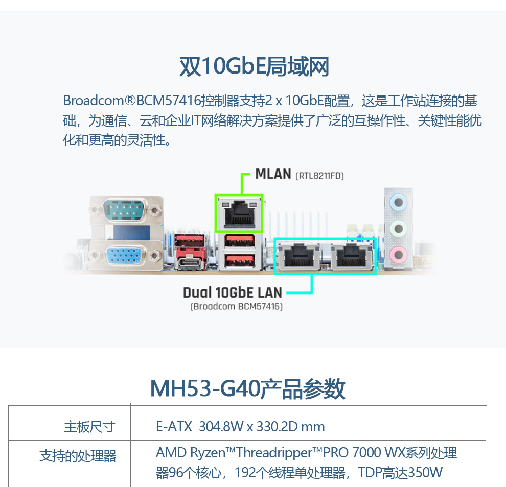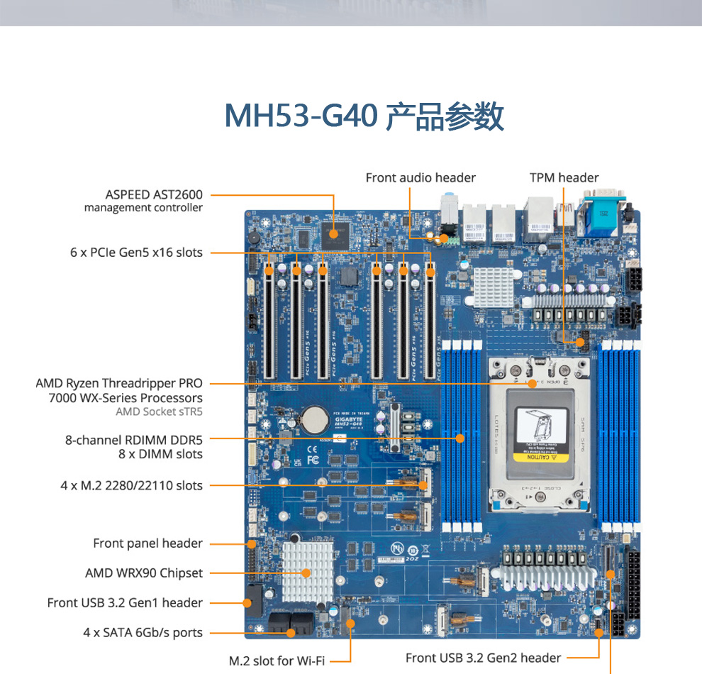 • 商品名称:技嘉(GIGABYTE)WRX90 AMD线程撕裂者7000WX MH53-G40 双万兆网口全新服务器 MH53-G40