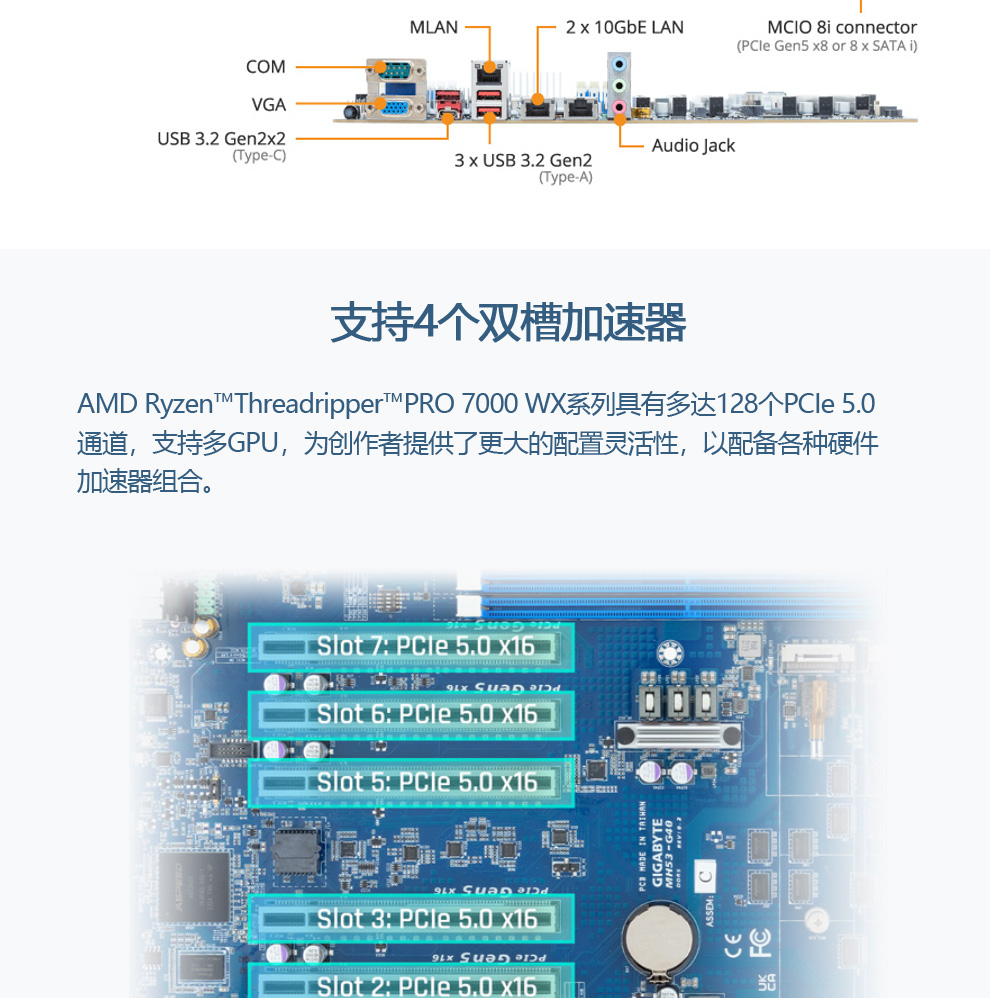技嘉(GIGABYTE)WRX90 AMD线程撕裂者7000WX MH53-G40 双万兆网口全新服务器 MH53-G40