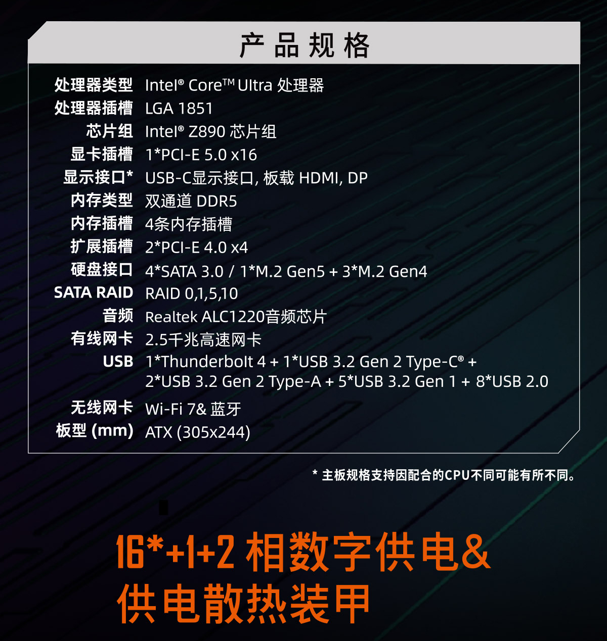 • 商品名称:技嘉(GIGABYTE)小雕Z890 AORUS ELITE WIFI7 DDR5主板 支持CPU Ultra U9-285K U7-265K LGA 1851