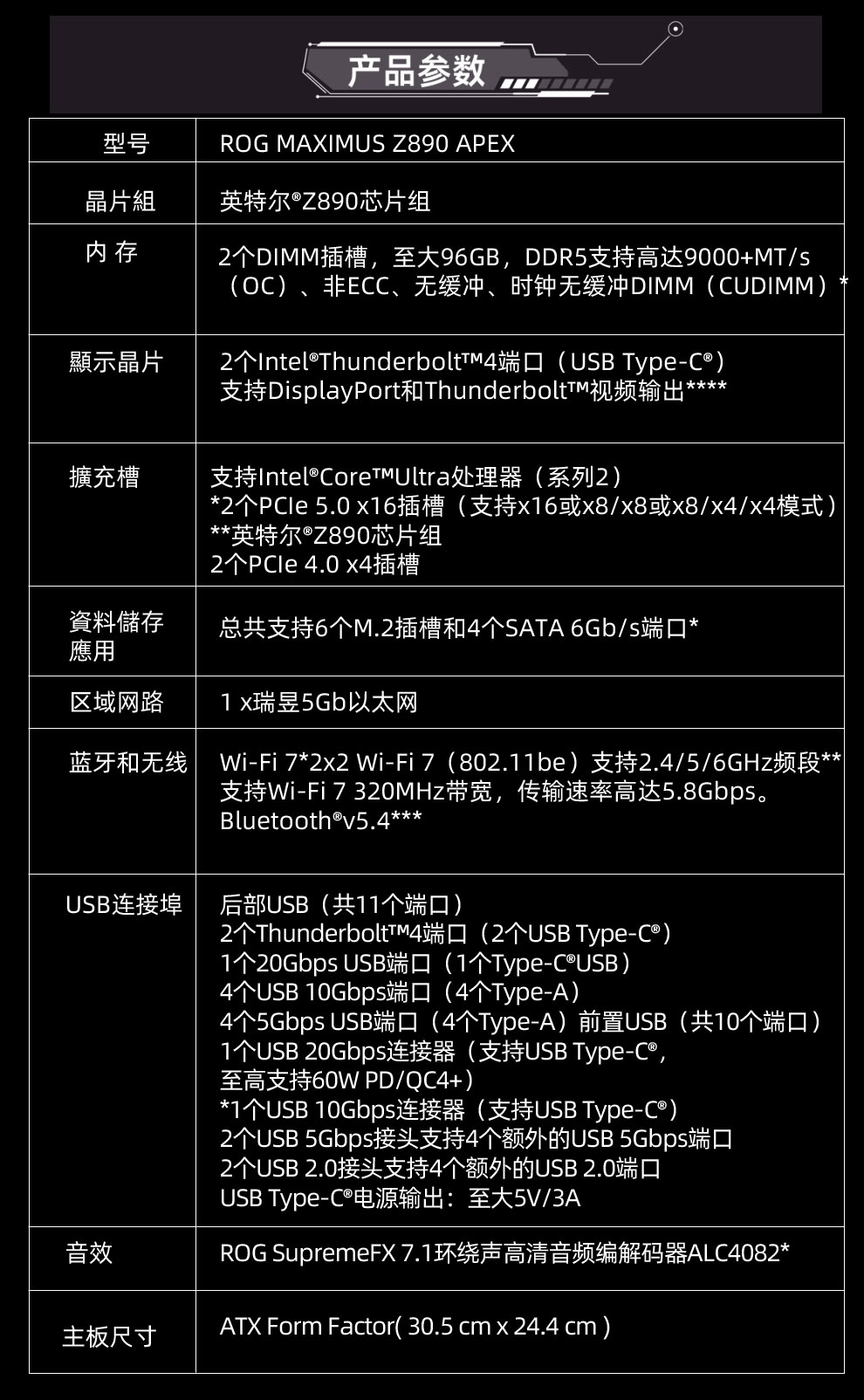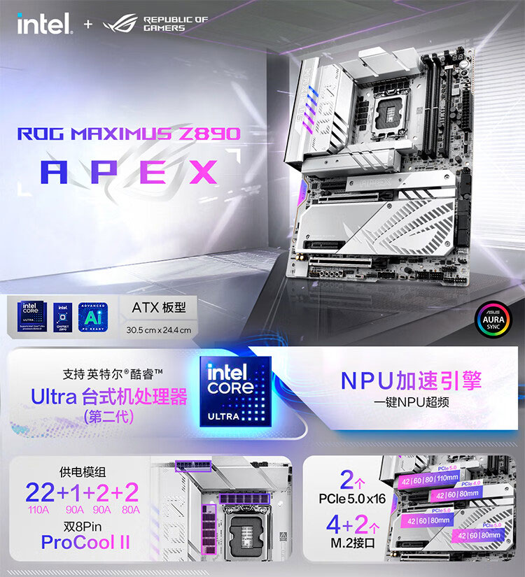 • 商品名称:华硕ROG MAXIMUS Z890 APEX纯血玩家国度白色电竞主板