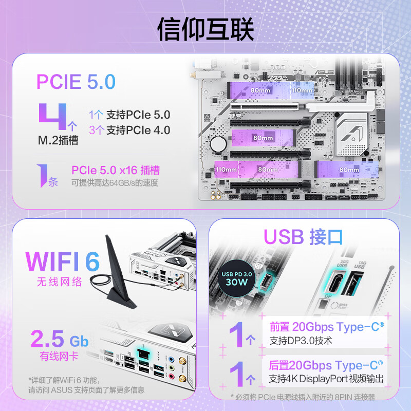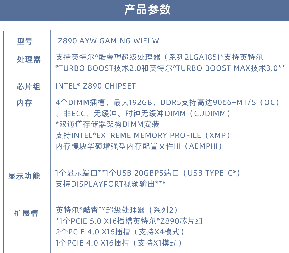 • 商品名称:华硕 Z890 AYW GAMING WIFI W哎呦喂电竞主板
