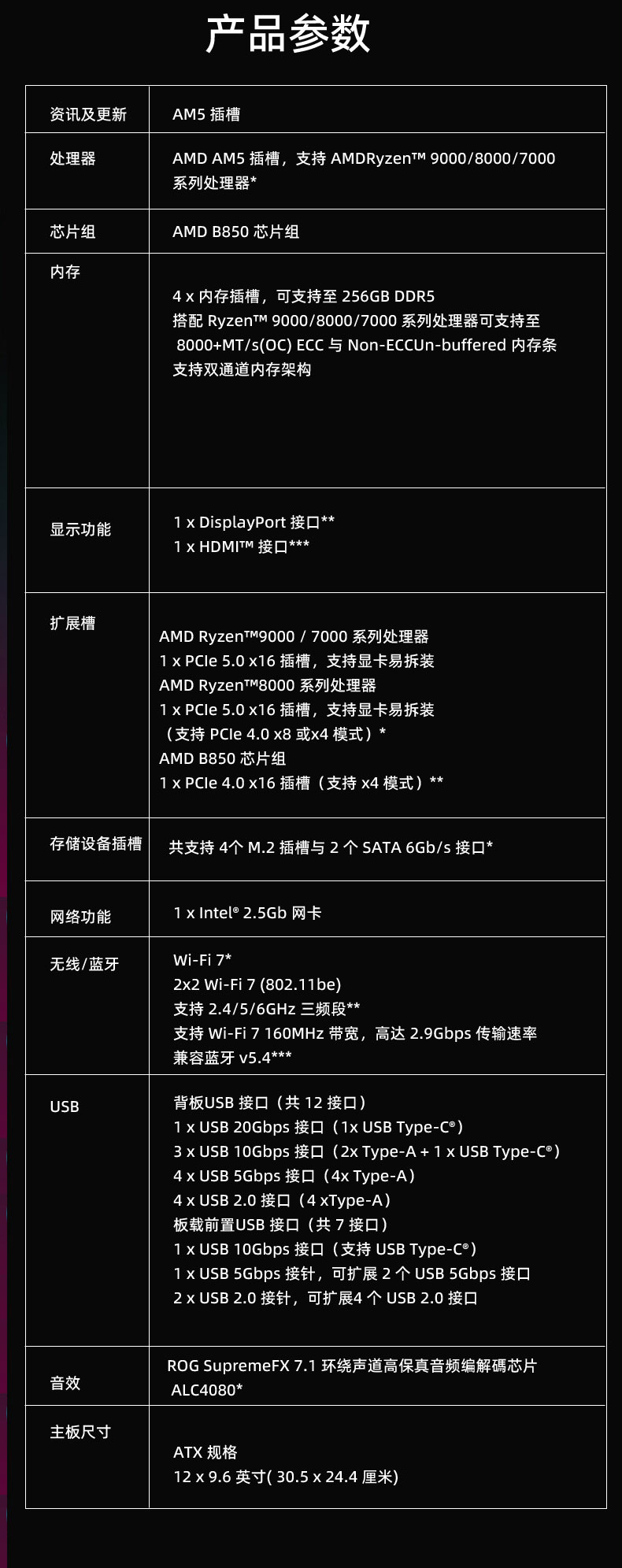 • 商品名称:华硕ROG STRIX B850-F GAMING WIFI 主板