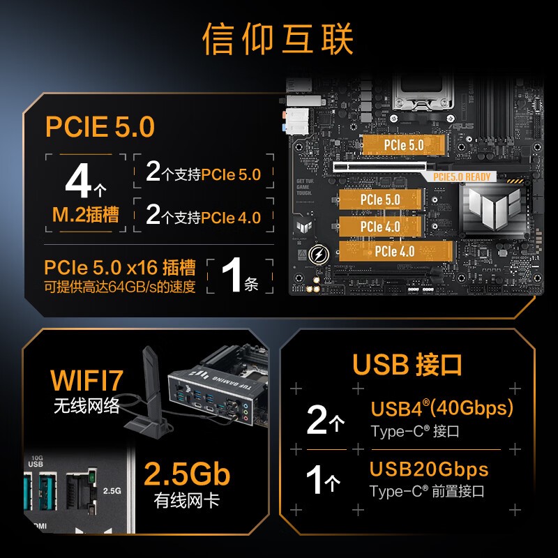 • 商品名称:华硕TUF GAMING X870E-PLUS WIFI7主板
