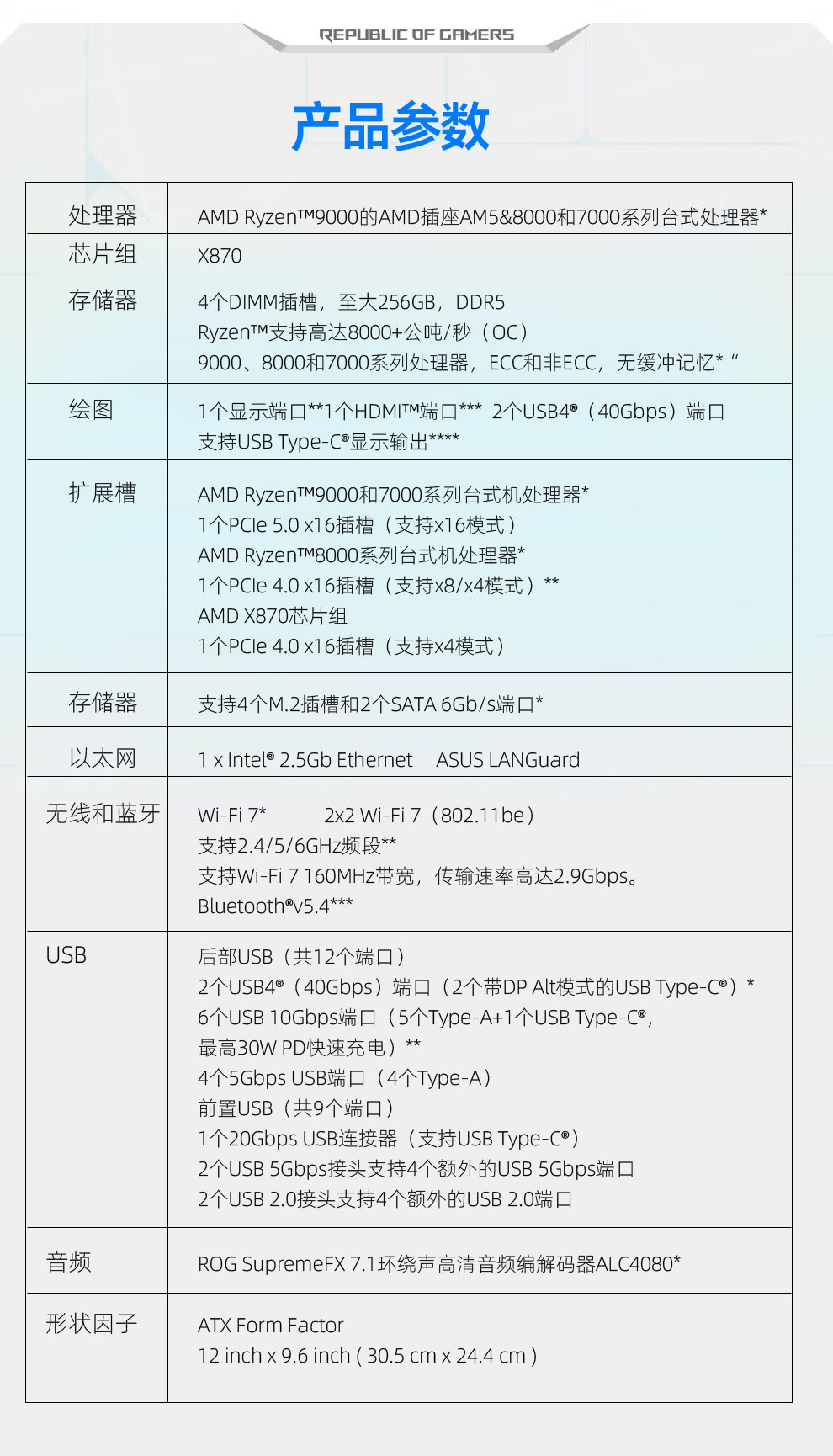 • 商品名称:华硕ROG STRIX X870-A GAMING WIFI S主板