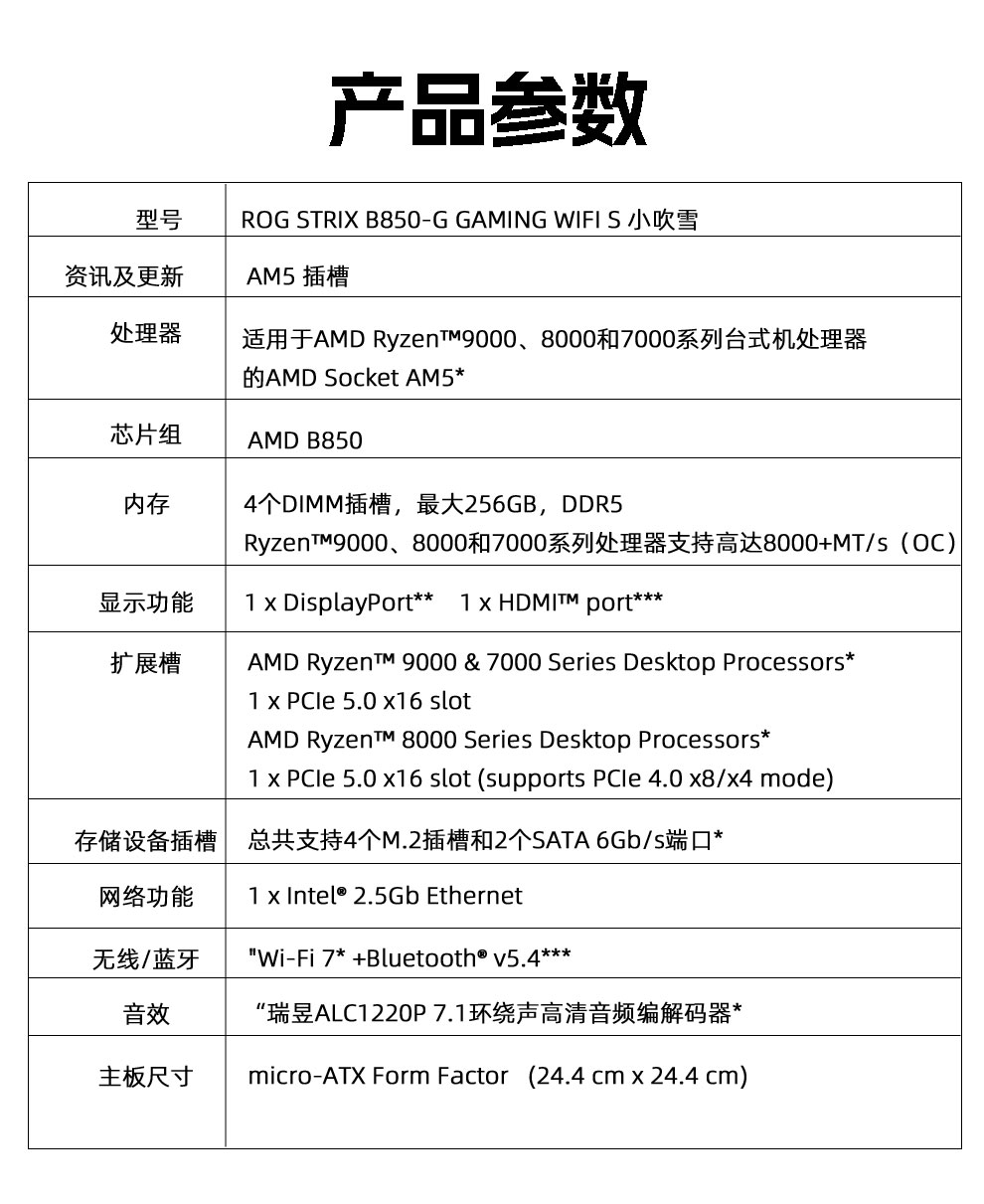 • 商品名称:华硕ROG STRIX B850-G GAMING WIFI S主板
