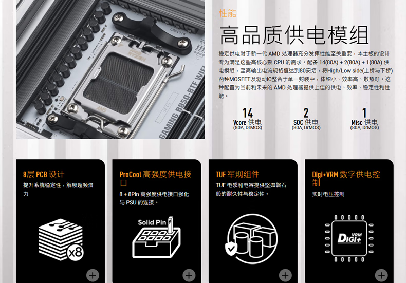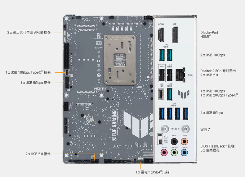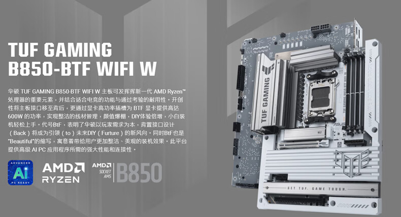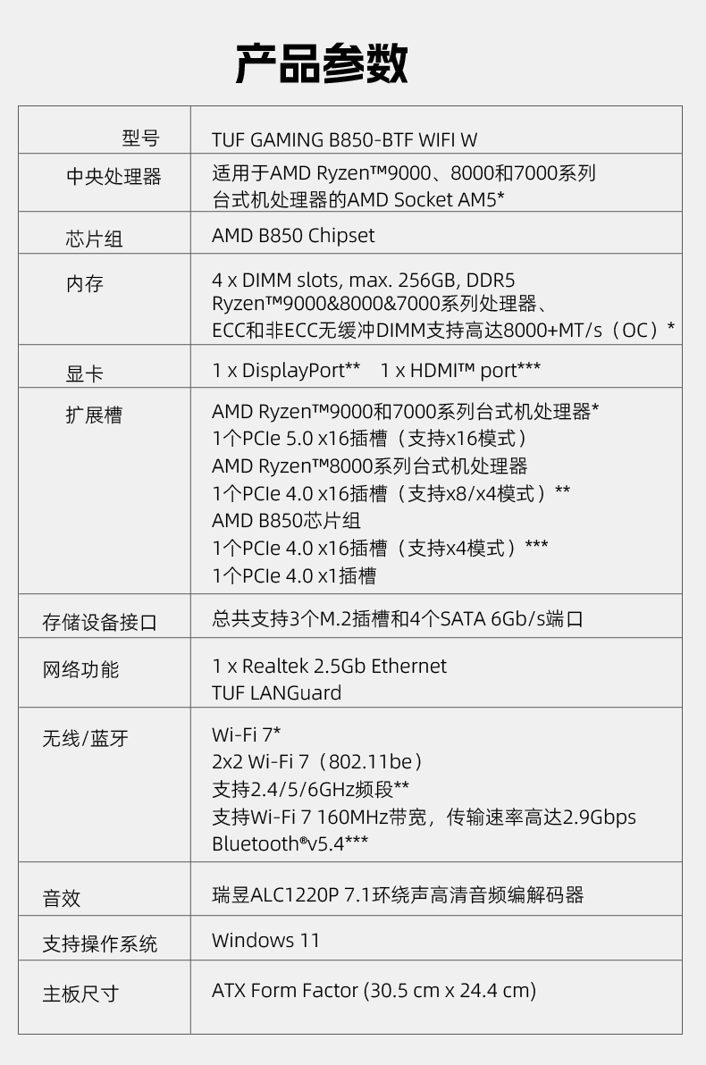 • 商品名称:华硕TUF GAMING B850-BTF WIFI W主板