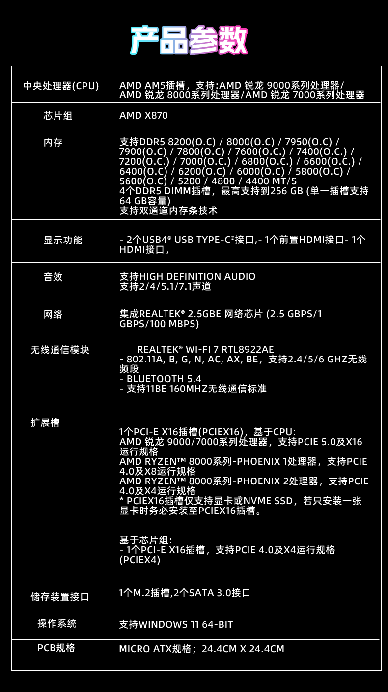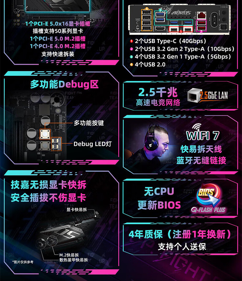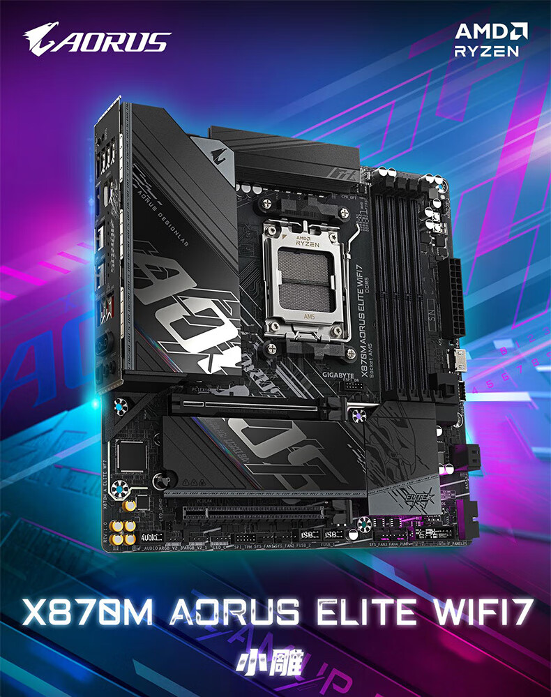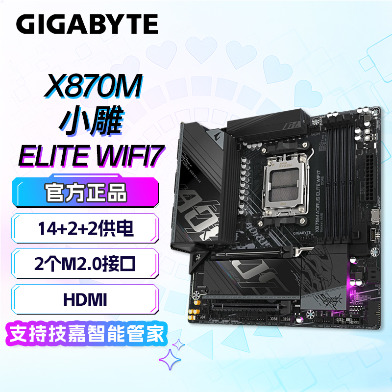 • 商品名称:技嘉(GIGABYTE)X870M AORUS ELITE WF7主板