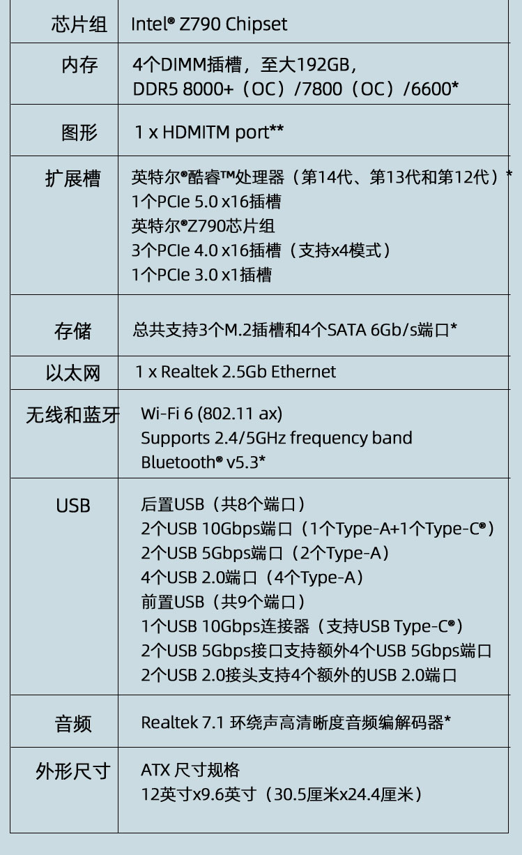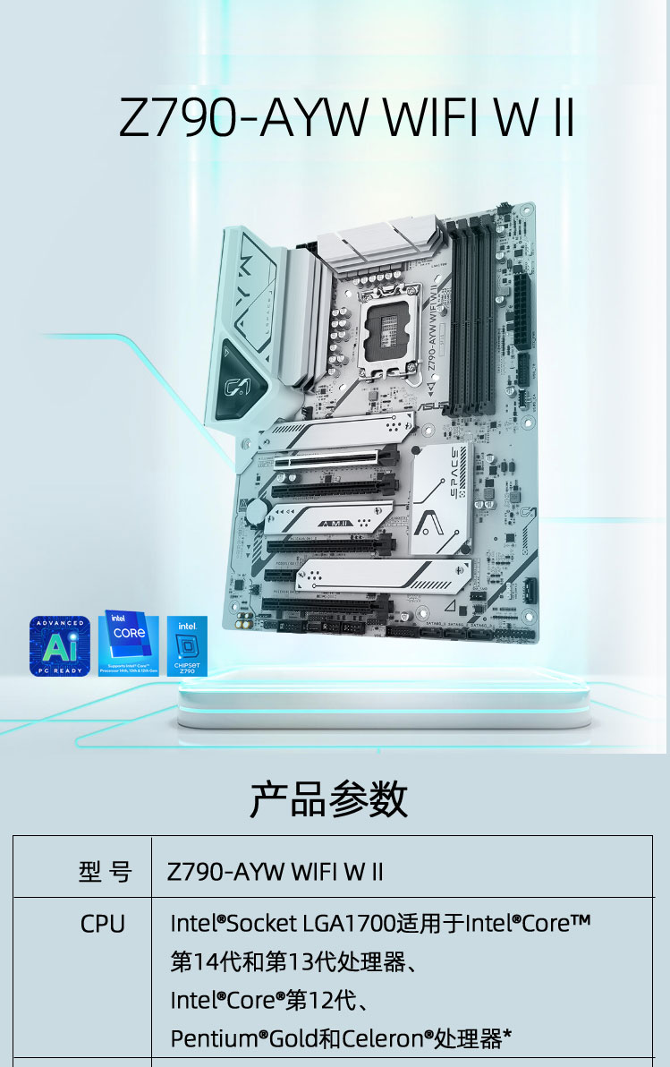 • 商品名称:华硕Z790-AYW WIFI W II主板