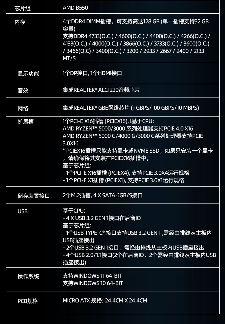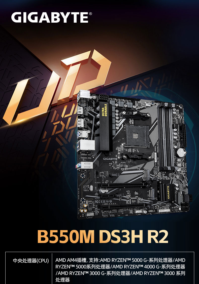 • 商品名称:技嘉(GIGABYTE)B550M DS3H R2主板