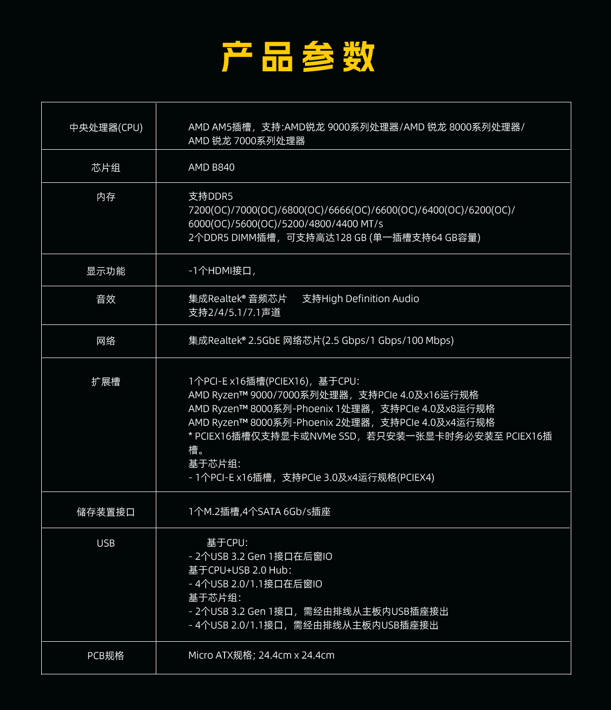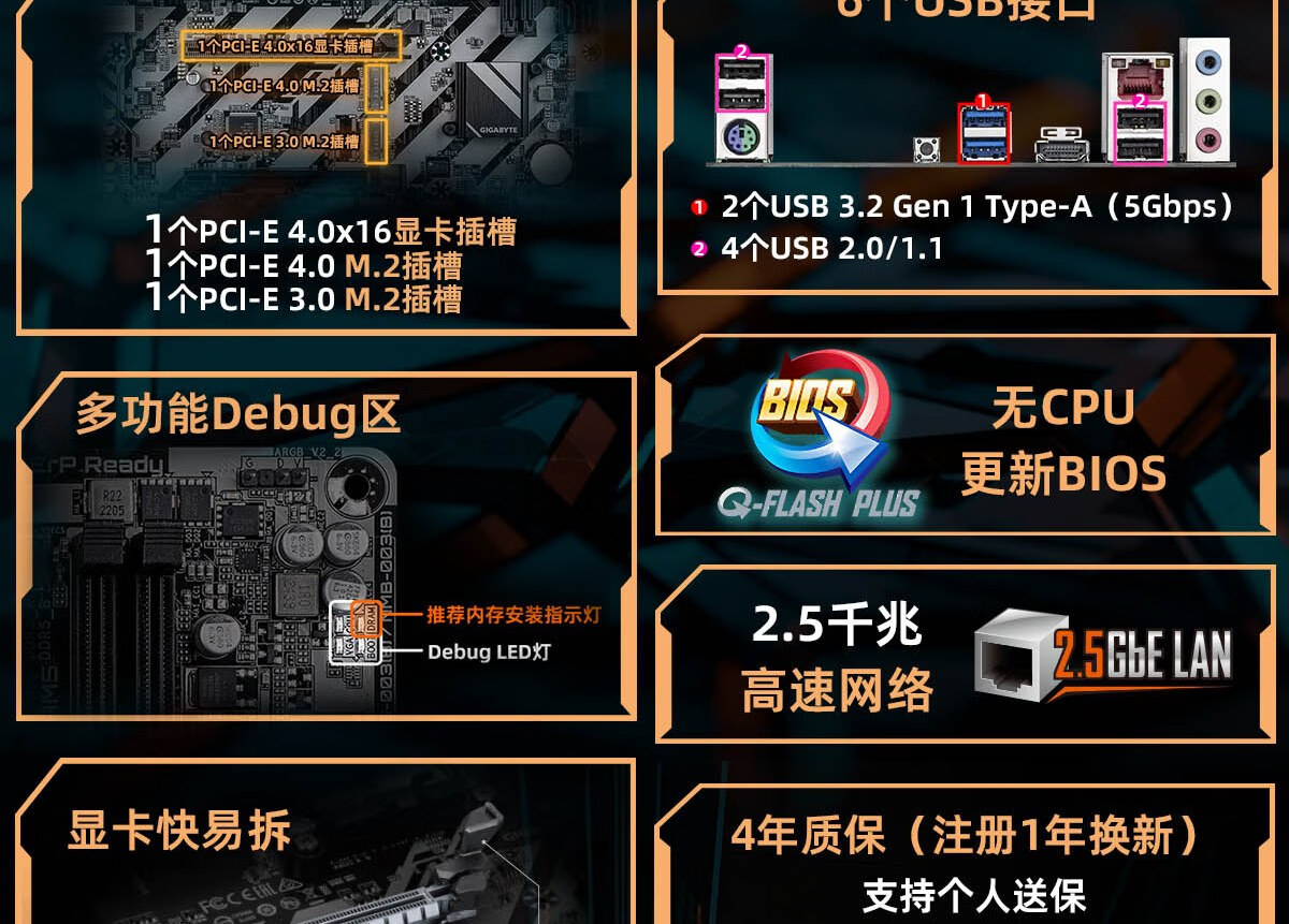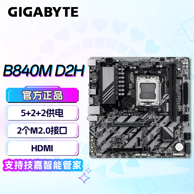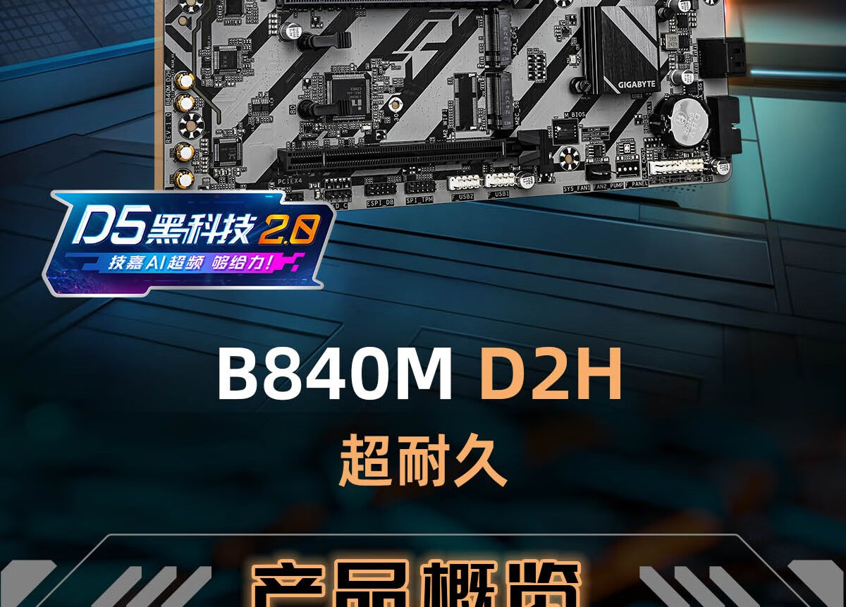 • 商品名称:技嘉(GIGABYTE)超耐久B840M D2H主板DDR5