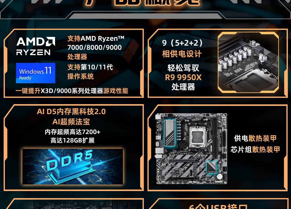 技嘉(GIGABYTE)超耐久B840M D2H主板DDR5