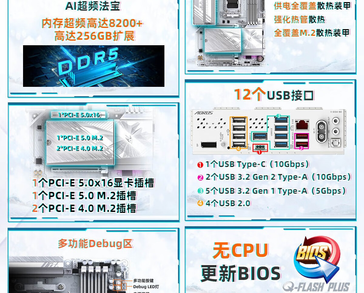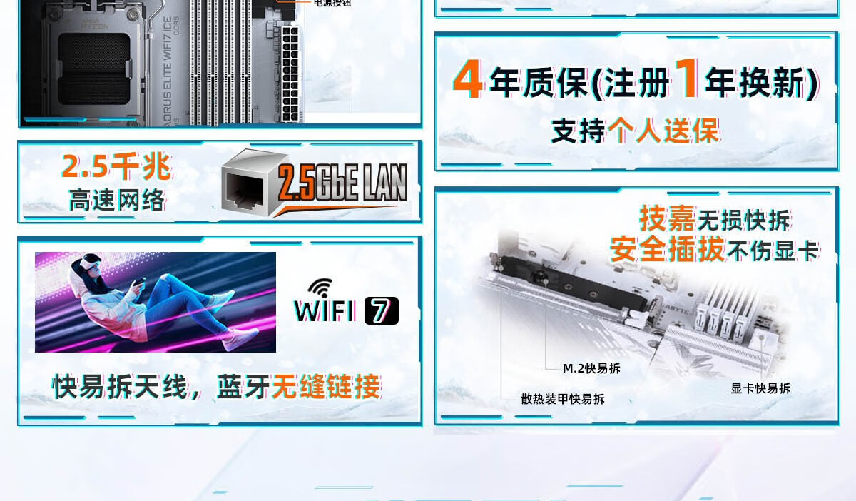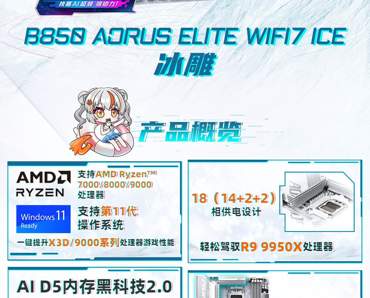 • 商品名称:技嘉(GIGABYTE)B850 EAGLE WF7 ICE 主板