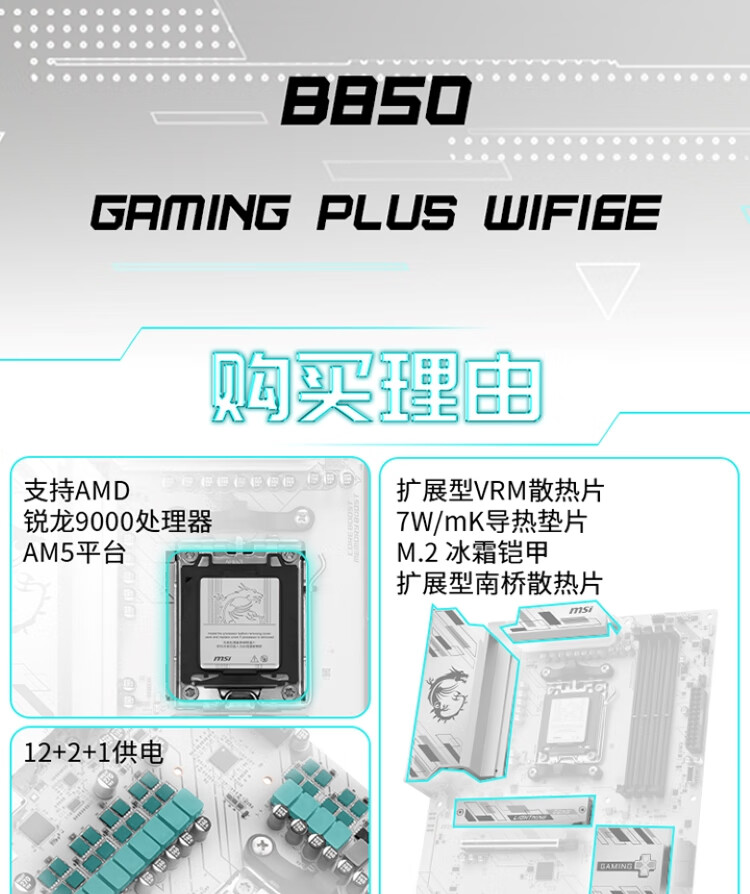 • 商品名称:微星(MSI)B850 GAMING PLUS WIFI6E