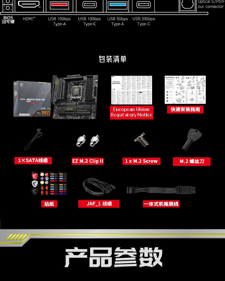• 商品名称:微星(MSI)MAG B850M MORTAR 主板