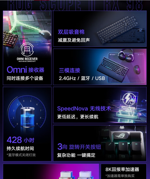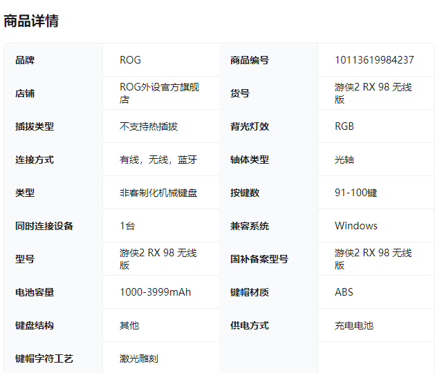 • 商品名称:华硕 ROG 游侠2 RX 98无线版 月耀白 ABS 蓝轴