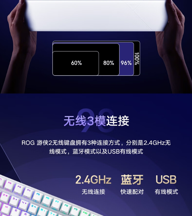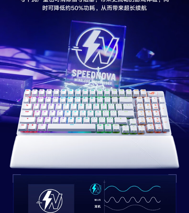 华硕 ROG 游侠2 98无线版 月耀白 ABS 雪舞白轴 键盘