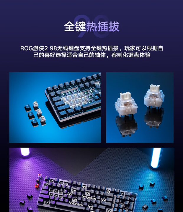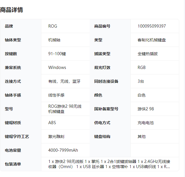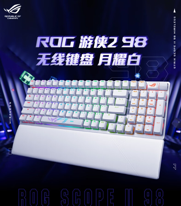 • 商品名称:华硕 ROG 游侠2 98无线版 月耀白 ABS 雪舞白轴 键盘