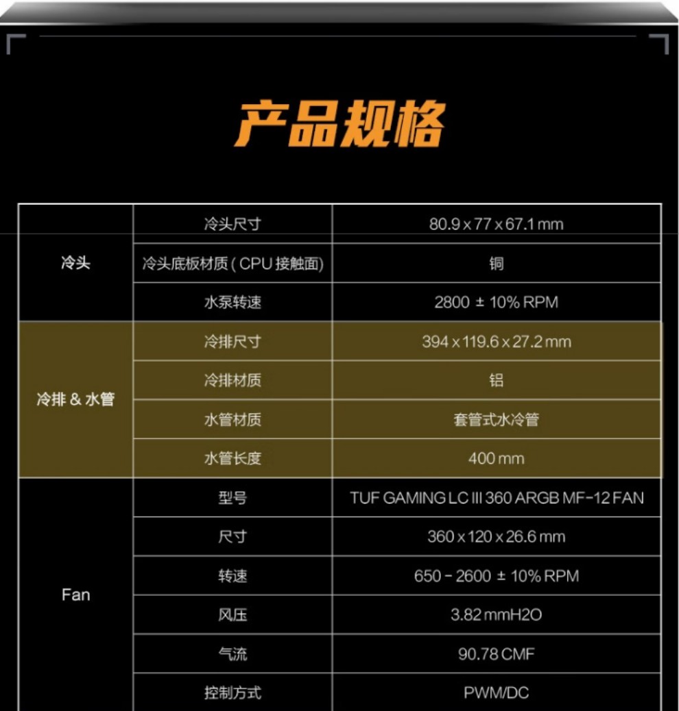• 商品名称:华硕(ASUS)TUF GAMING LC III 360 ARGB LCD 散热器
