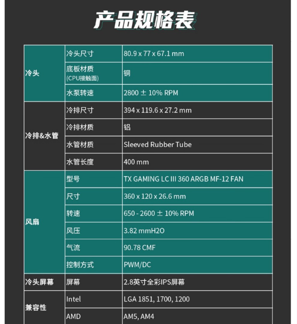 • 商品名称:华硕(ASUS)TX GAMING LC III 360 ARGB LCD 散热器