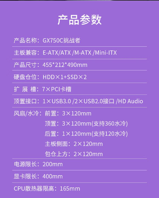 • 商品名称:航嘉(Huntkey)挑战者 GX750C 机箱 黑色