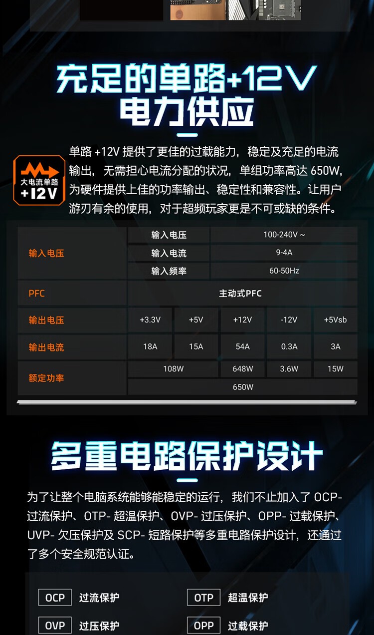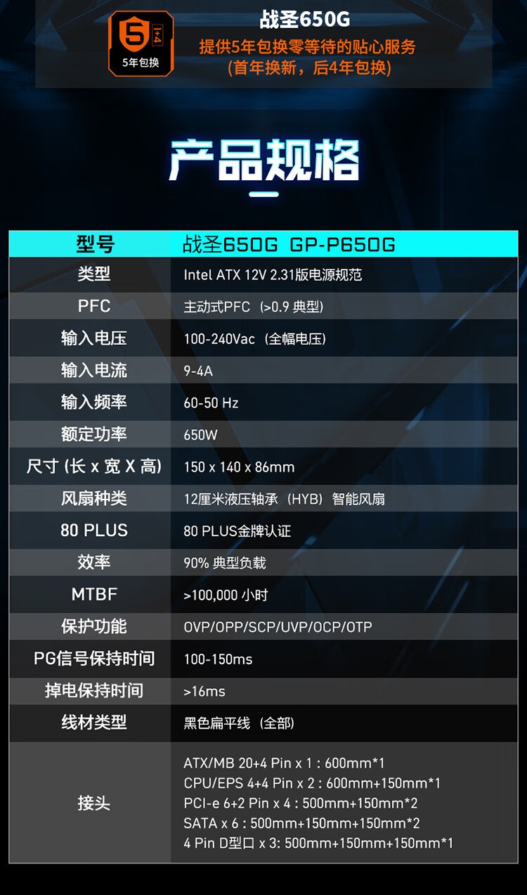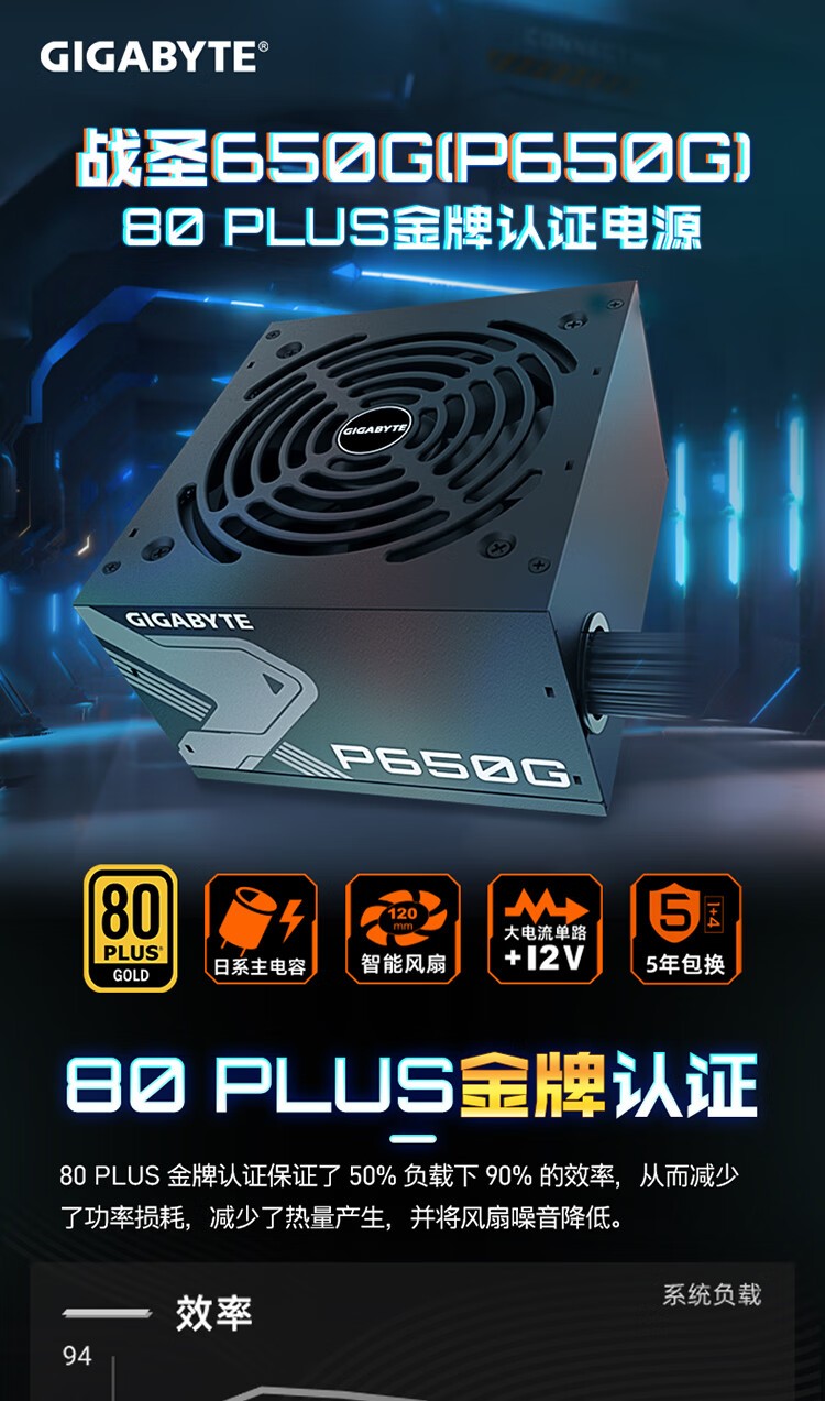 • 商品名称:技嘉(GIGABYTE)战圣650G GP-P650G 电源