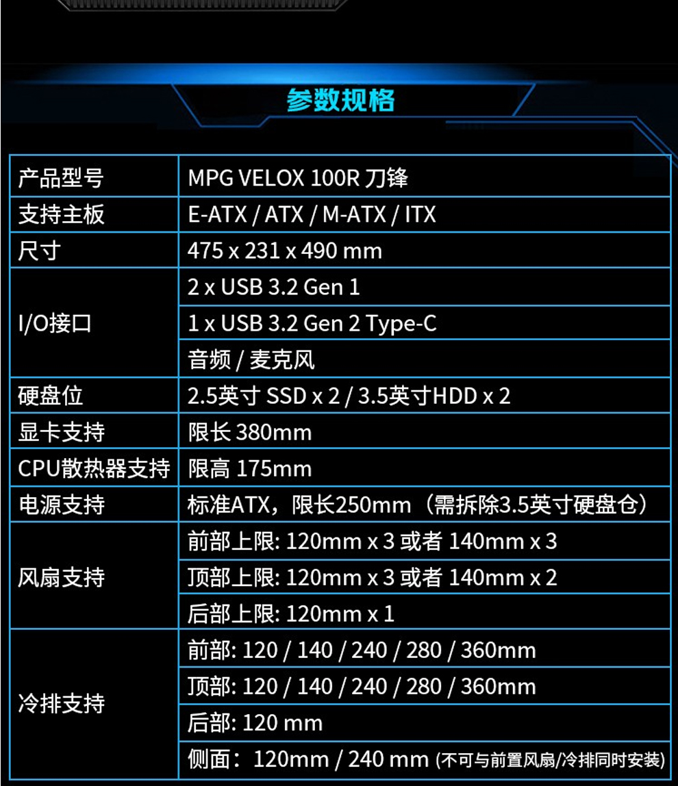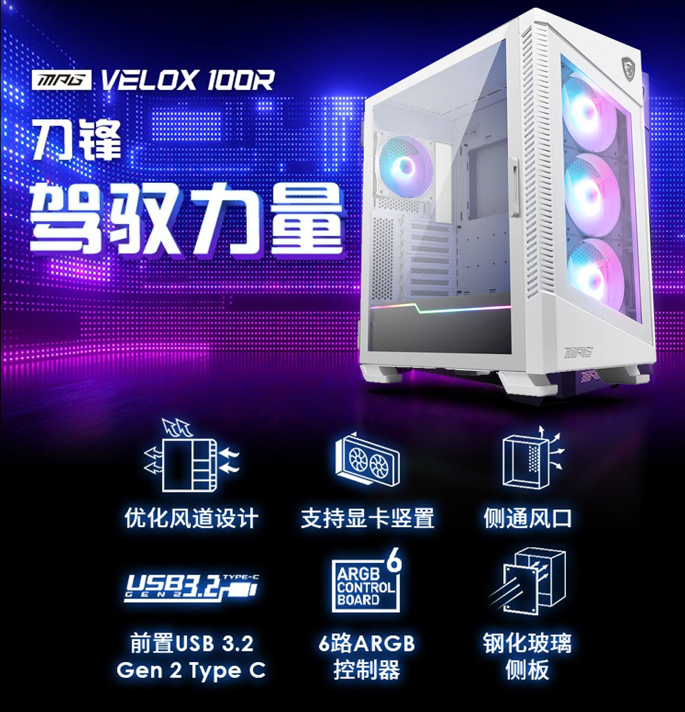 • 商品名称:微星(MSI)MPG VELOX 100R WHITE 机箱